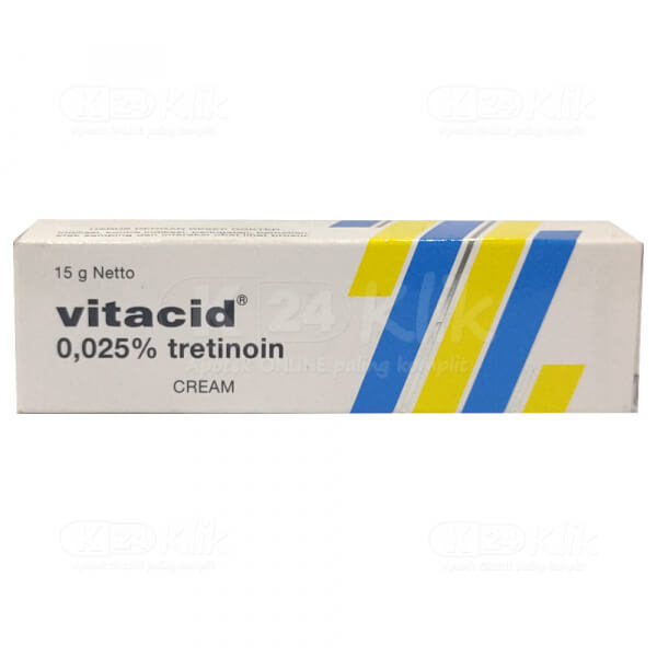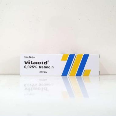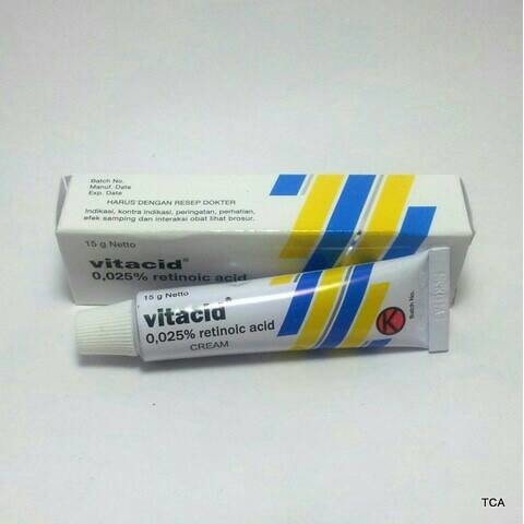 . Apa efek samping dari Vitacid Krim 0025 - 15 g. Obat jerawat topikal dengan kandungan Retinoic Acid atau Asam Retinoat tretinoin. Tube 20 g.